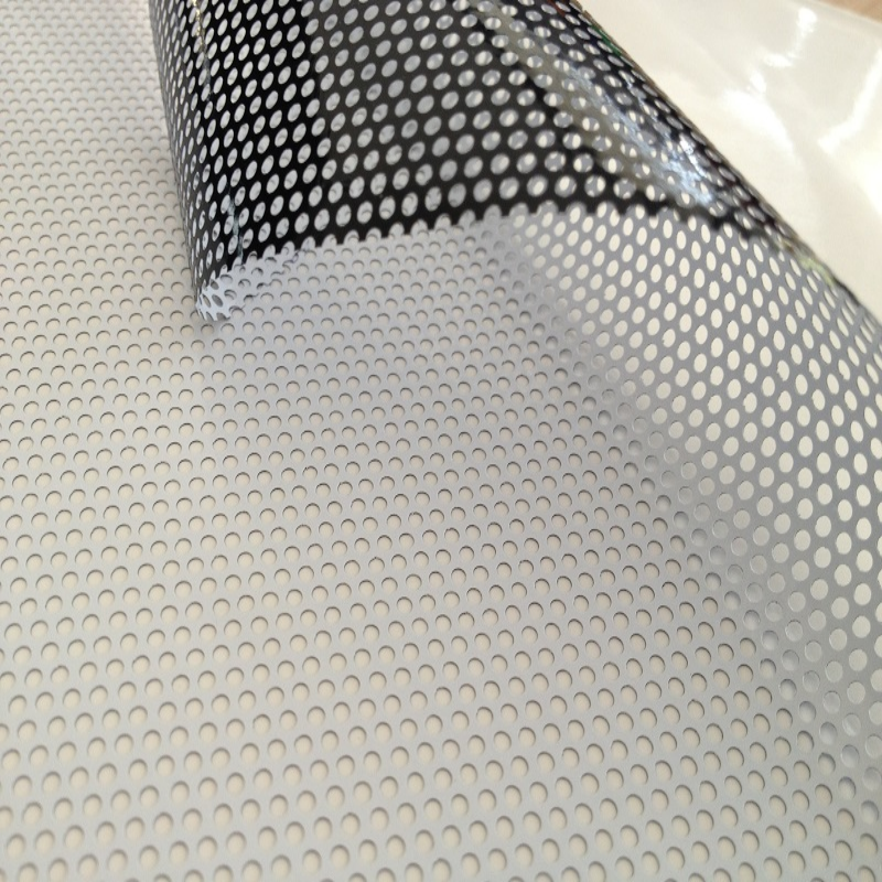 IKONOS perforated film is designed for printing One side is printable in white, while the adhesive side is black It is commonly used for simple window or automotive applications, for storefront applications, as it allows seeing out from the inside, while the printed image can be seen from the outside